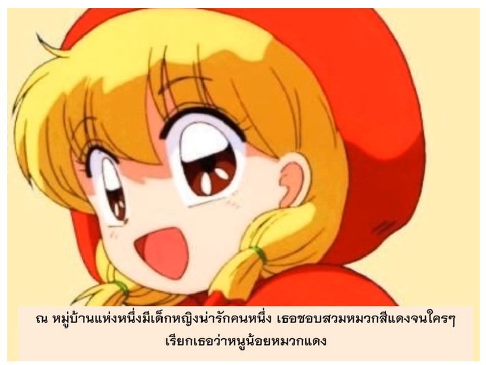 ณ หมู่บ้านแห่งหนึ่ง มีเด็กหญิงน่ารักคนหนึ่ง เธอชอบสวมหมวกสีแดงจนใครๆ เรียกเธอว่าหนูน้อยหมวกแดง